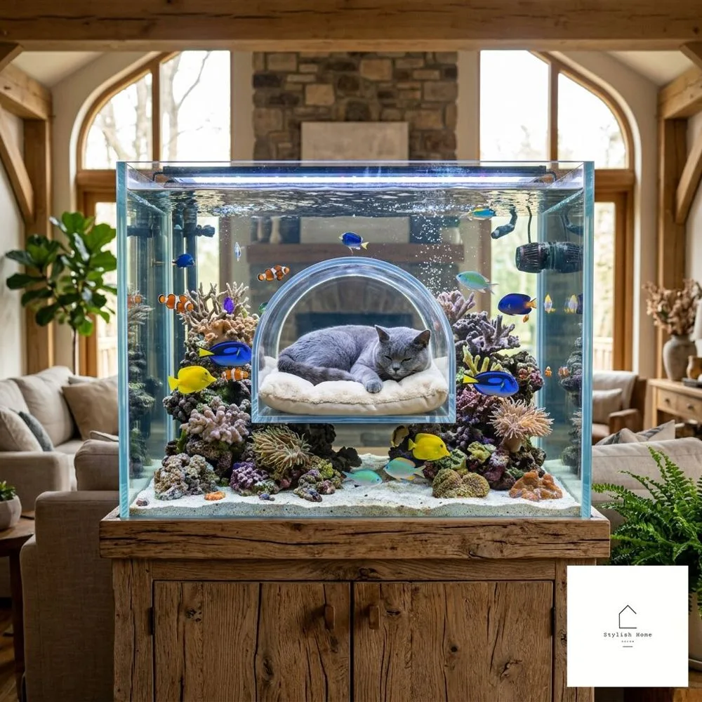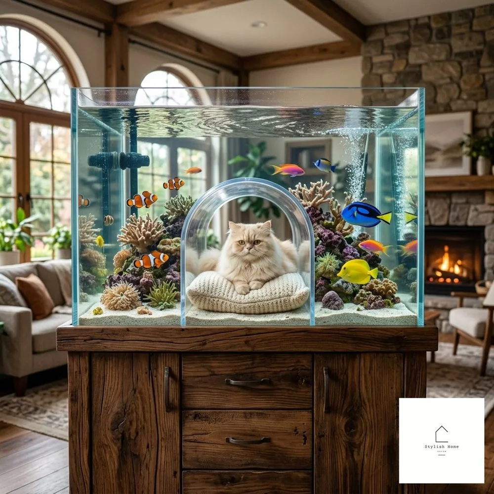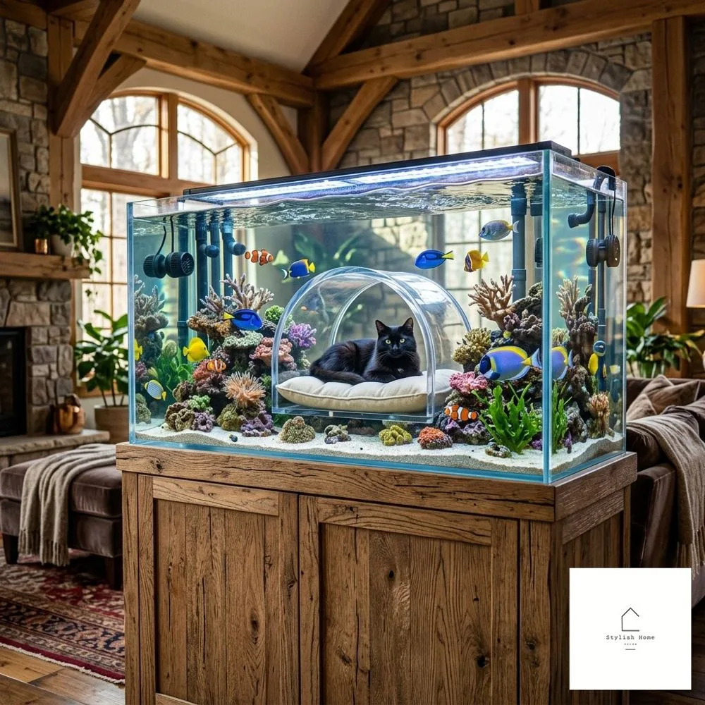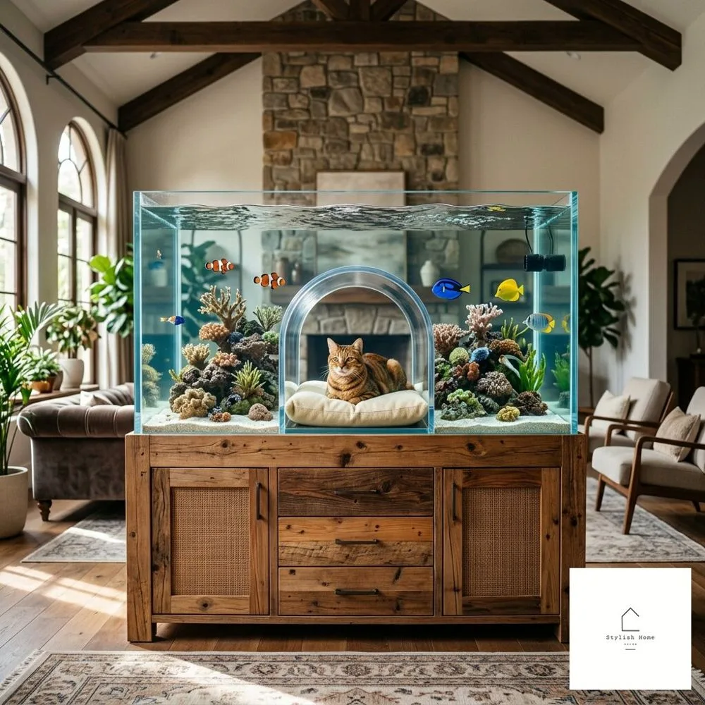 Let’s be honest—an aquarium with built-in cat tunnel is a showstopper. When guests enter your home and see your cat lounging inside or beneath a beautifully lit aquarium, surrounded by tropical fish, the reactions are priceless. It’s functional art that serves multiple purposes.