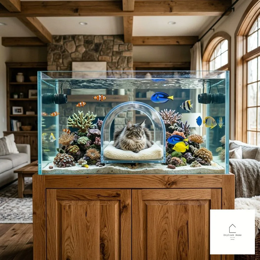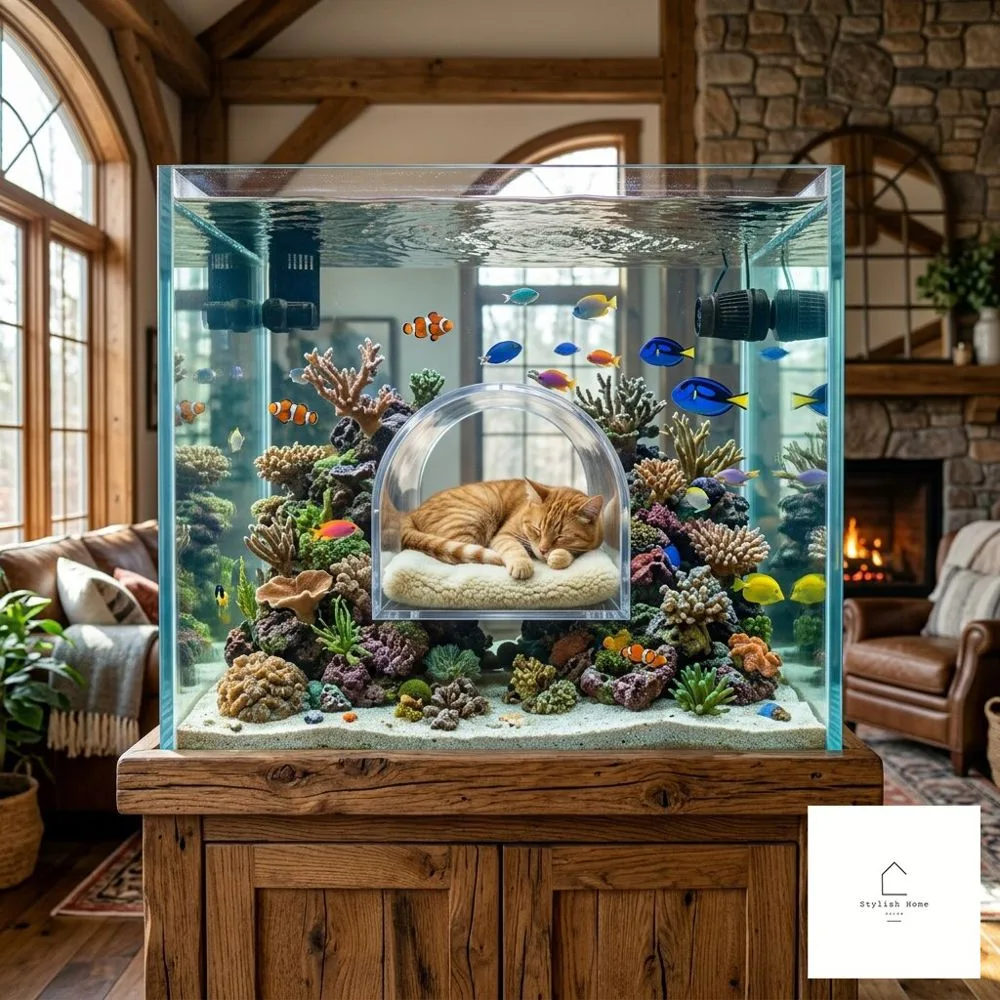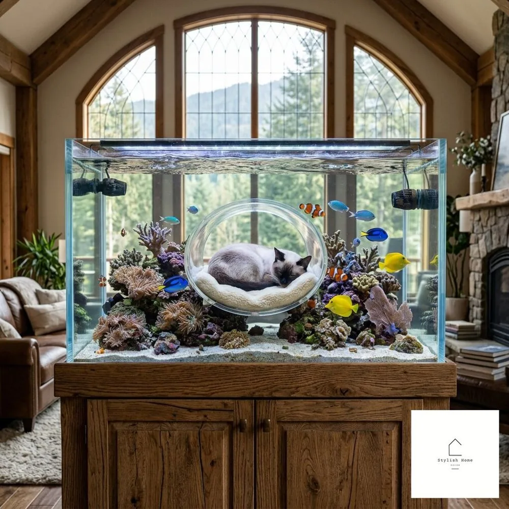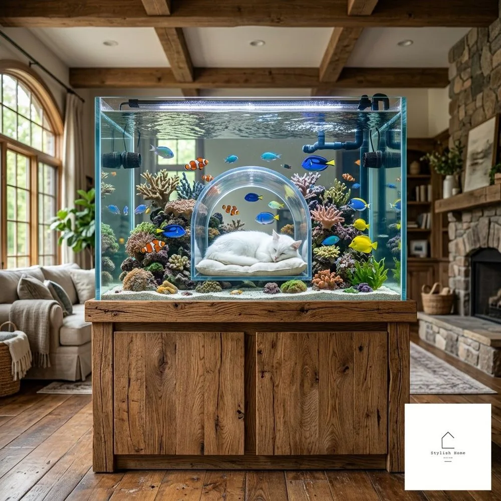 Let’s be honest—an aquarium with built-in cat tunnel is a showstopper. When guests enter your home and see your cat lounging inside or beneath a beautifully lit aquarium, surrounded by tropical fish, the reactions are priceless. It’s functional art that serves multiple purposes.