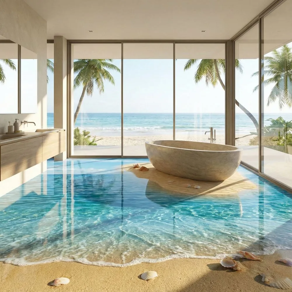 Certain spaces naturally lend themselves to epoxy beach floor installations. Bathrooms rank among the most popular choices because the water-resistant nature of epoxy makes perfect sense in wet environments. A beach-themed bathroom floor creates a spa-like atmosphere that transforms daily routines into relaxing coastal experiences.