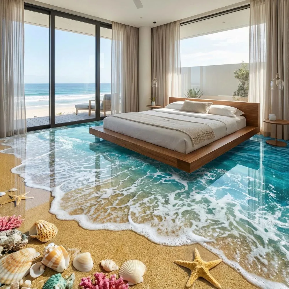 Epoxy beach floors are created using specialized resin-based materials that can be manipulated to create three-dimensional effects resembling ocean scenes, beaches, and aquatic environments. Unlike standard flooring, these installations are essentially works of art that serve a functional purpose. The process involves multiple layers of clear epoxy resin combined with pigments, metallic powders, decorative elements, and sometimes actual beach materials like sand or shells.