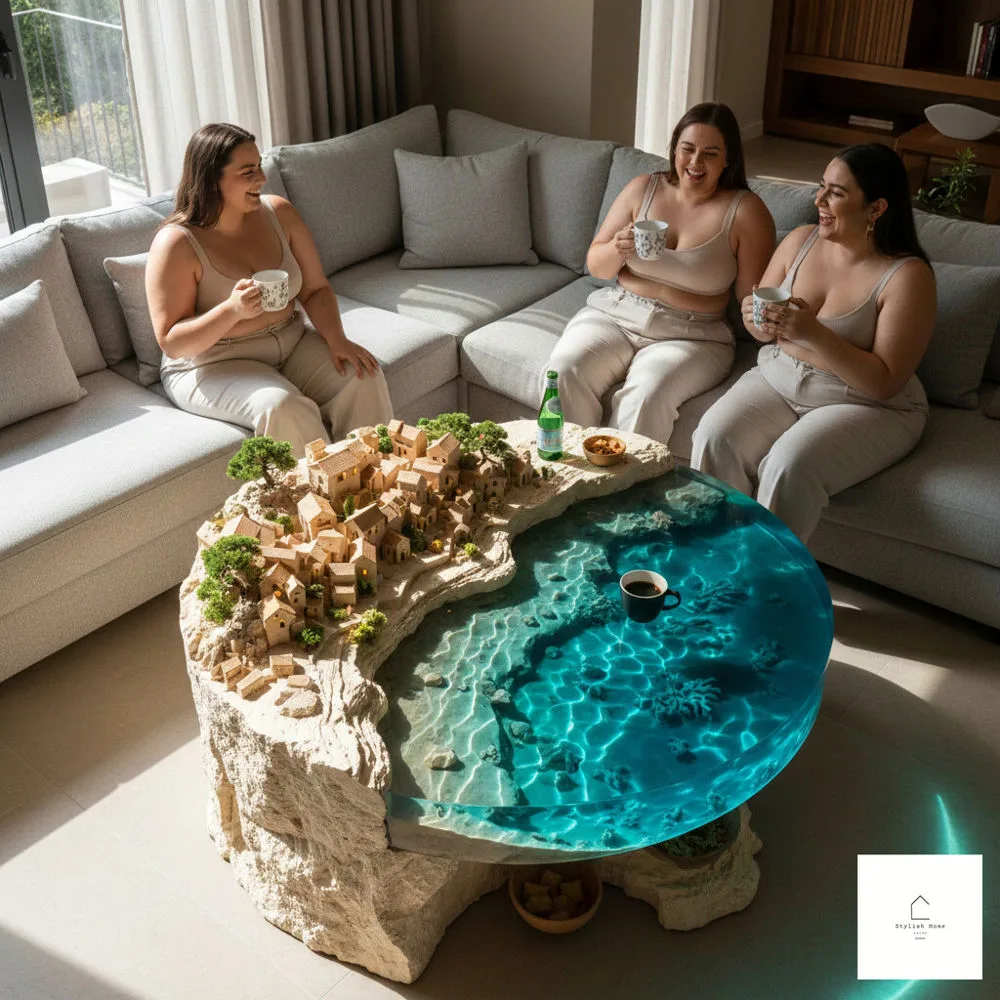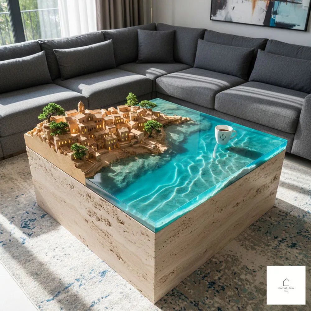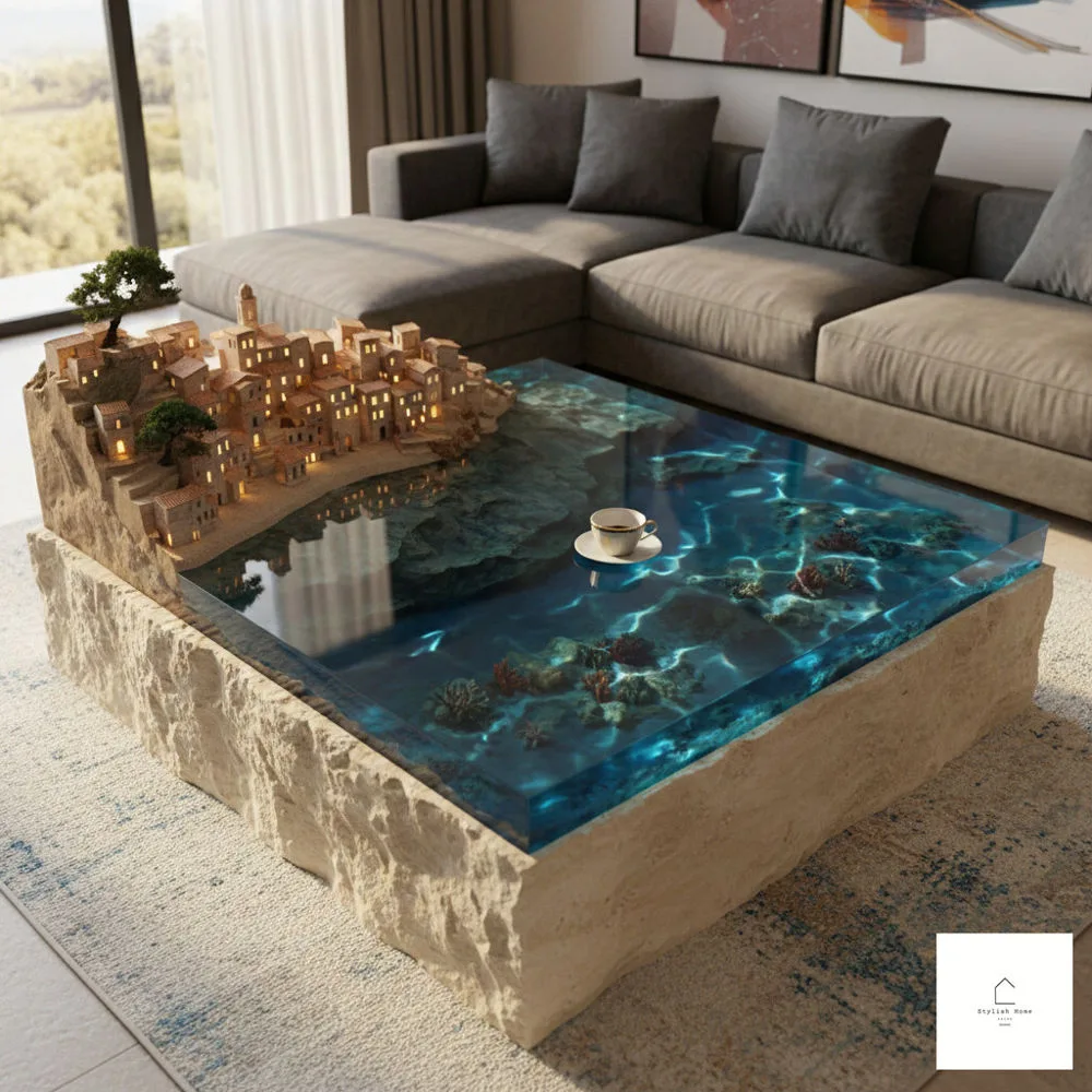 An epoxy coastal cliffside village coffee table represents the beautiful convergence of artistry, craftsmanship, and functionality. These pieces transform ordinary living spaces into gallery-like environments while still serving practical purposes. The combination of natural wood, colorful epoxy resin, and miniature architectural details creates depth, dimension, and visual interest that few other furniture pieces can match.