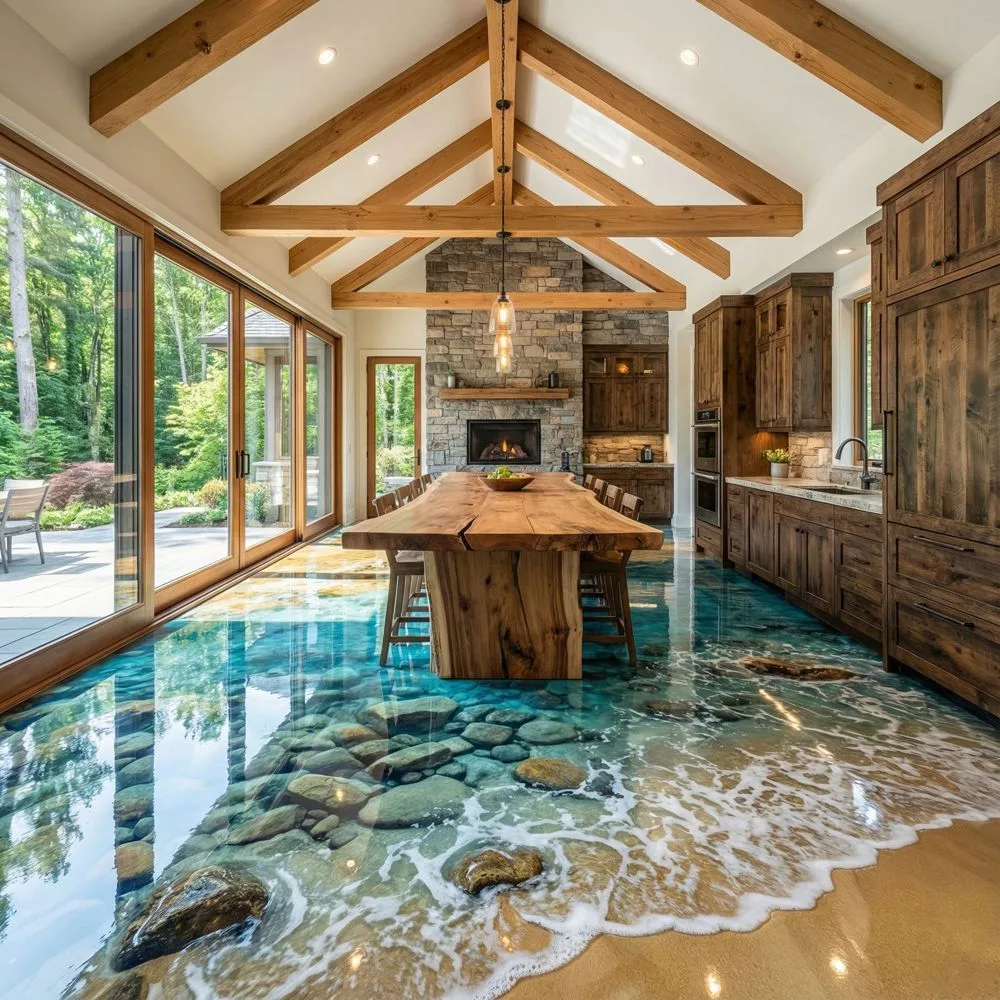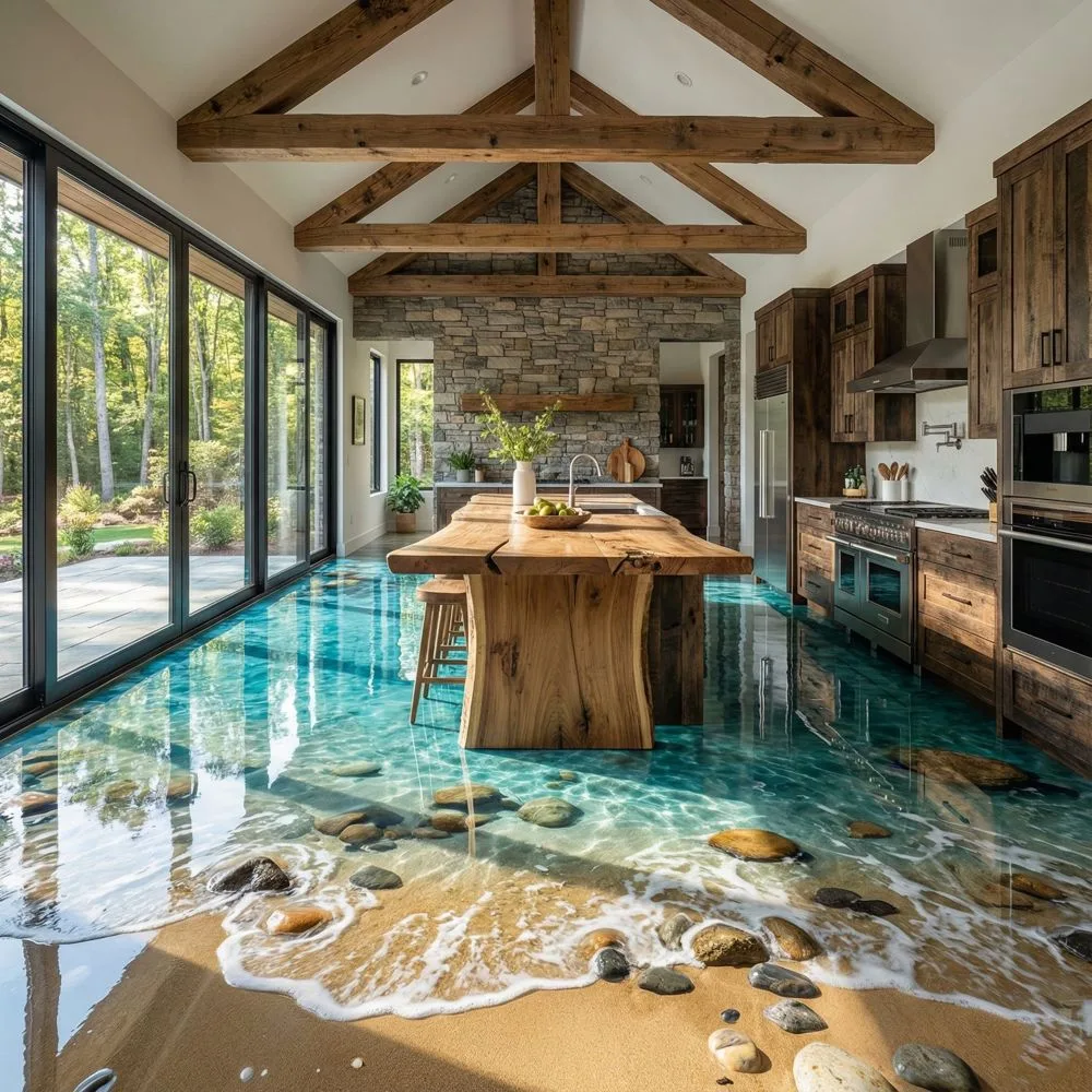 Kitchens present unique challenges that make flooring selection crucial. The constant exposure to spills, dropped utensils, heavy foot traffic, and cleaning chemicals requires materials that can withstand punishment while maintaining their appearance. Epoxy ocean kitchen flooring meets these demands exceptionally well while adding visual interest that other flooring types cannot match.