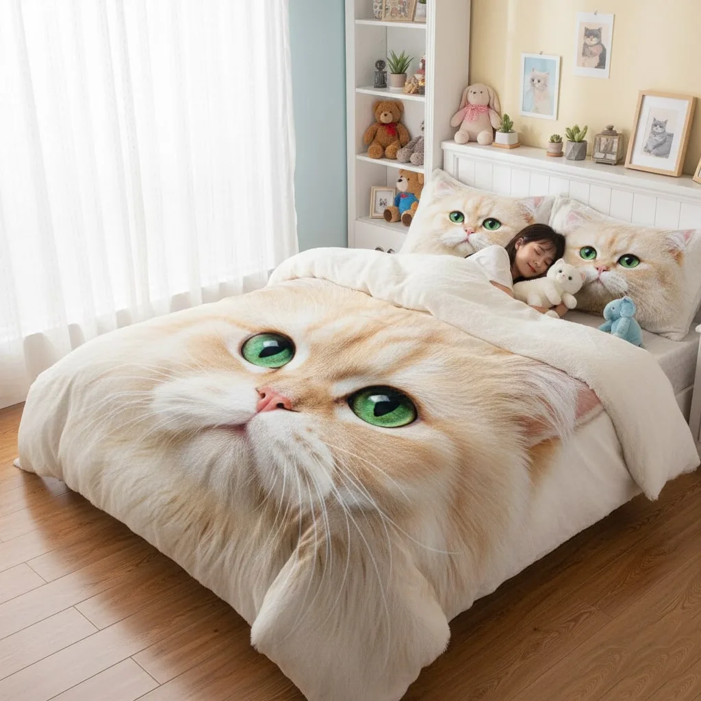 Giant cat shaped beds naturally become room focal points, so coordinate surrounding elements thoughtfully. Complementary bedding in solid colors or subtle patterns lets the bed design shine without creating visual chaos. Choose sheets and blankets that enhance rather than compete with your giant cat bed.