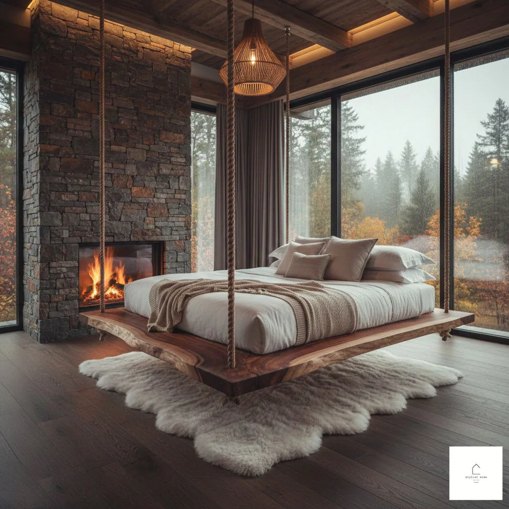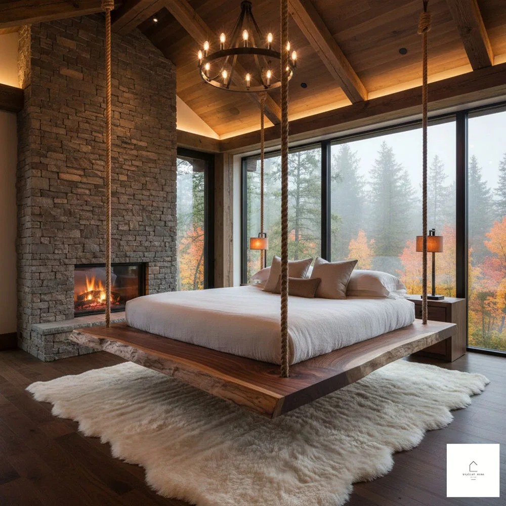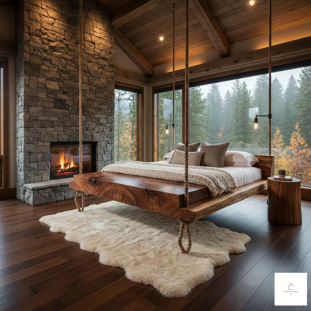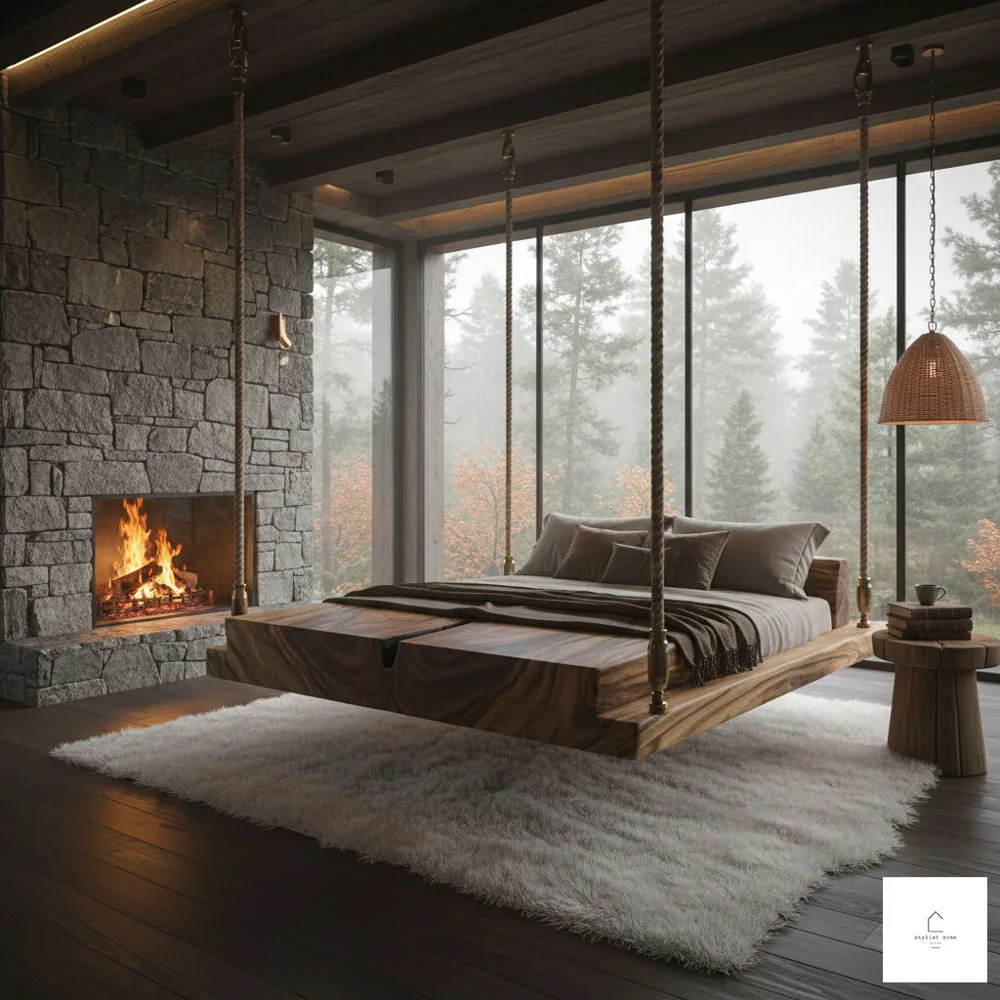The concept behind a hanging wood slab bed is beautifully simple yet architecturally complex. Instead of relying on legs or a traditional box spring foundation, these beds use strong cables, chains, or rods anchored to ceiling joists or reinforced wall mounts. The bed platform itself is typically crafted from a single thick slab of wood or multiple planks arranged to create a solid sleeping surface.