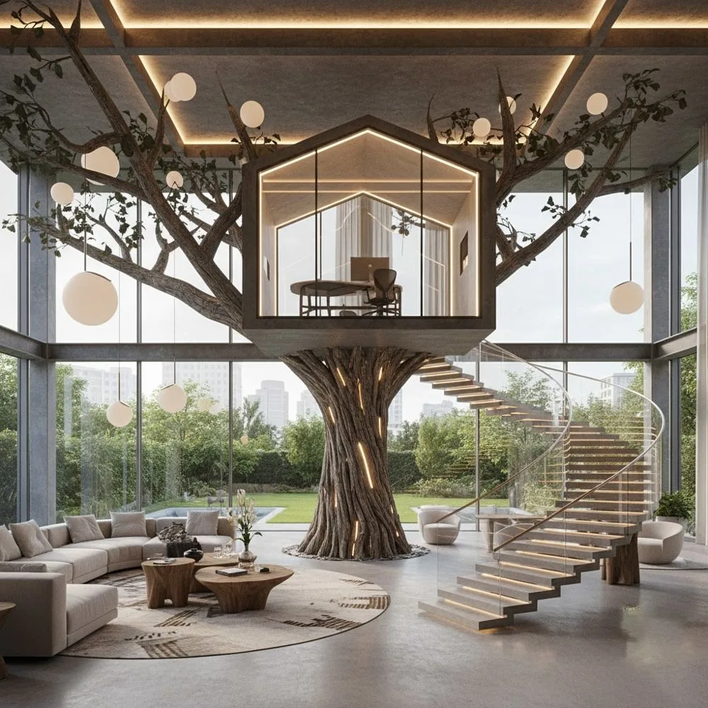 Biophilic design, the practice of connecting building occupants with nature, naturally complements indoor treehouse office concepts. Incorporating living plants throughout your elevated workspace purifies air while creating the lush canopy feeling authentic to treehouse environments.