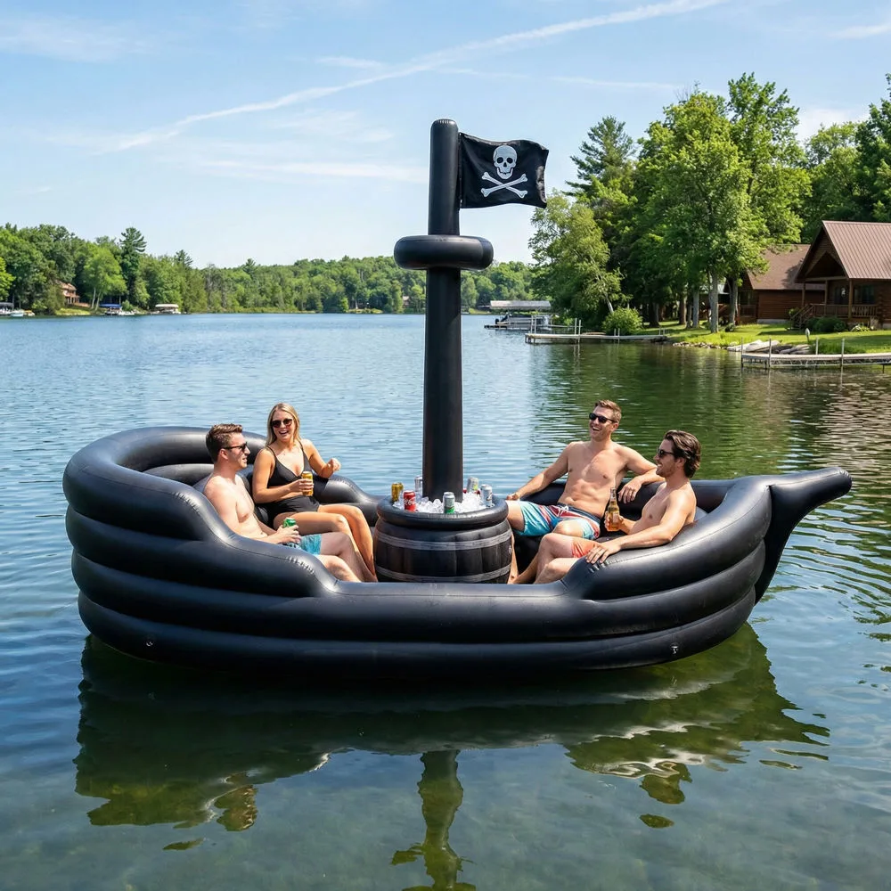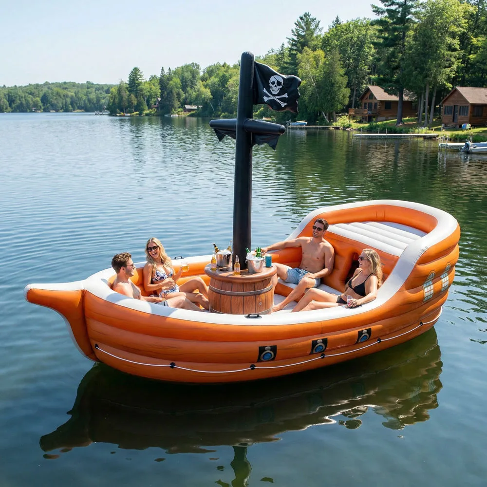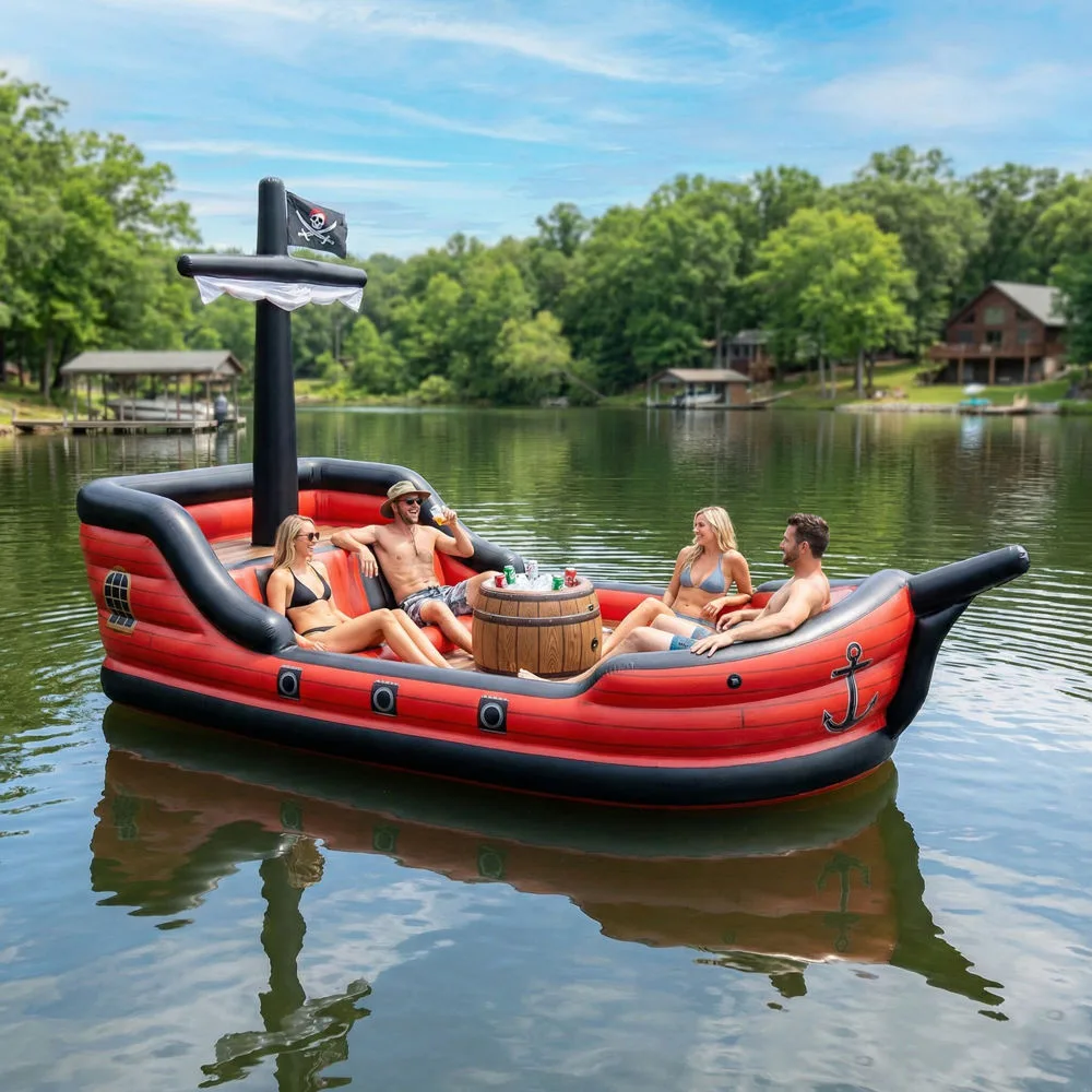 For those who believe bigger is better, giant inflatable pirate ship lake floats deliver an unforgettable experience. These impressive structures can span ten to fifteen feet or more, accommodating groups of six to twelve people depending on the specific model. They transform any body of water into a floating party venue complete with multiple seating areas, boarding platforms, and sometimes even water slides or diving boards.