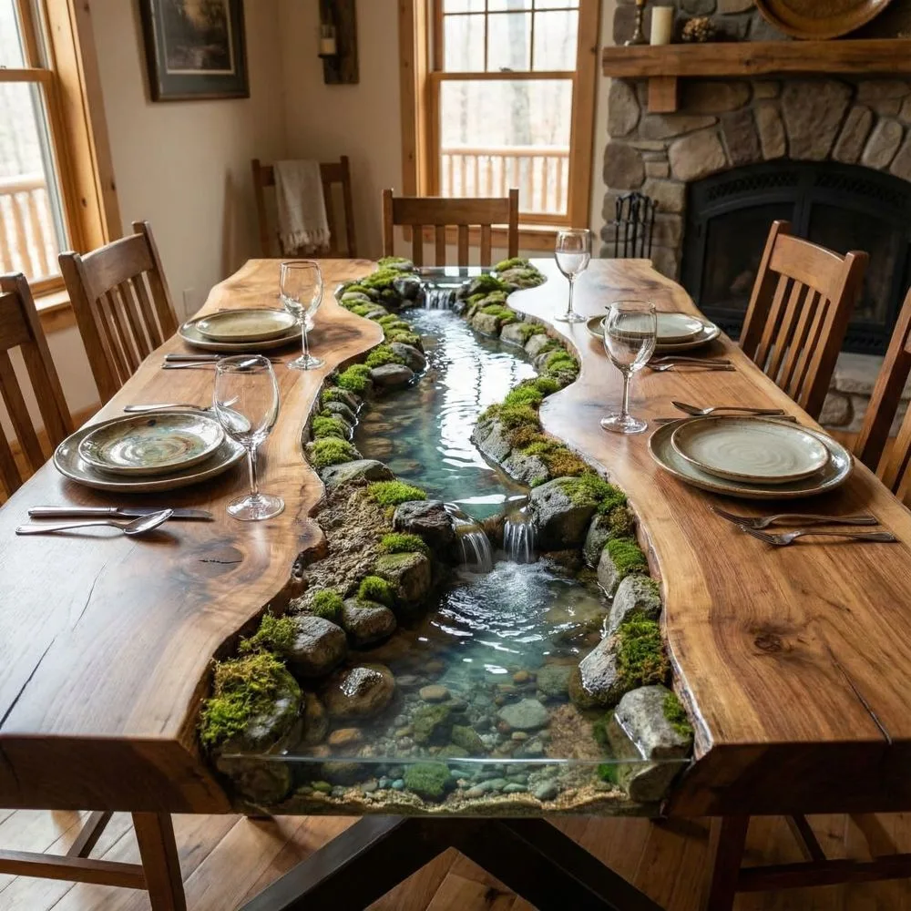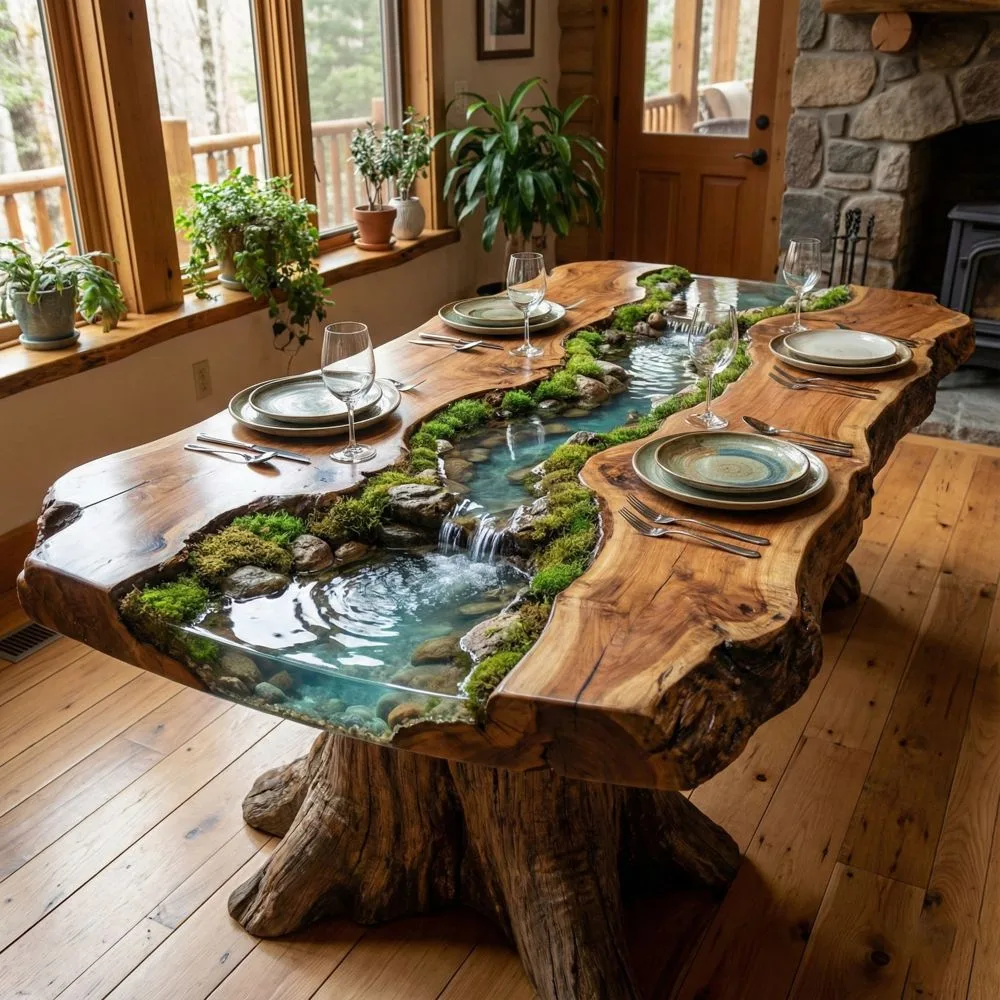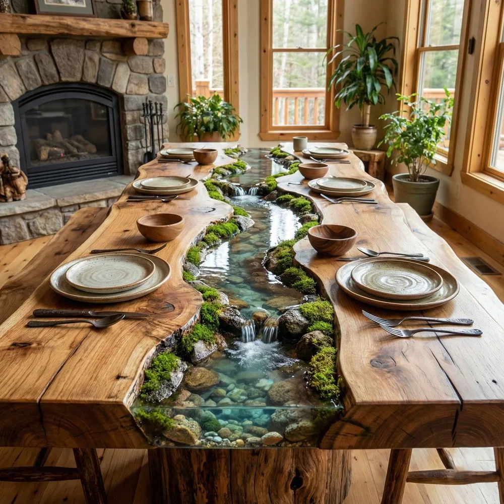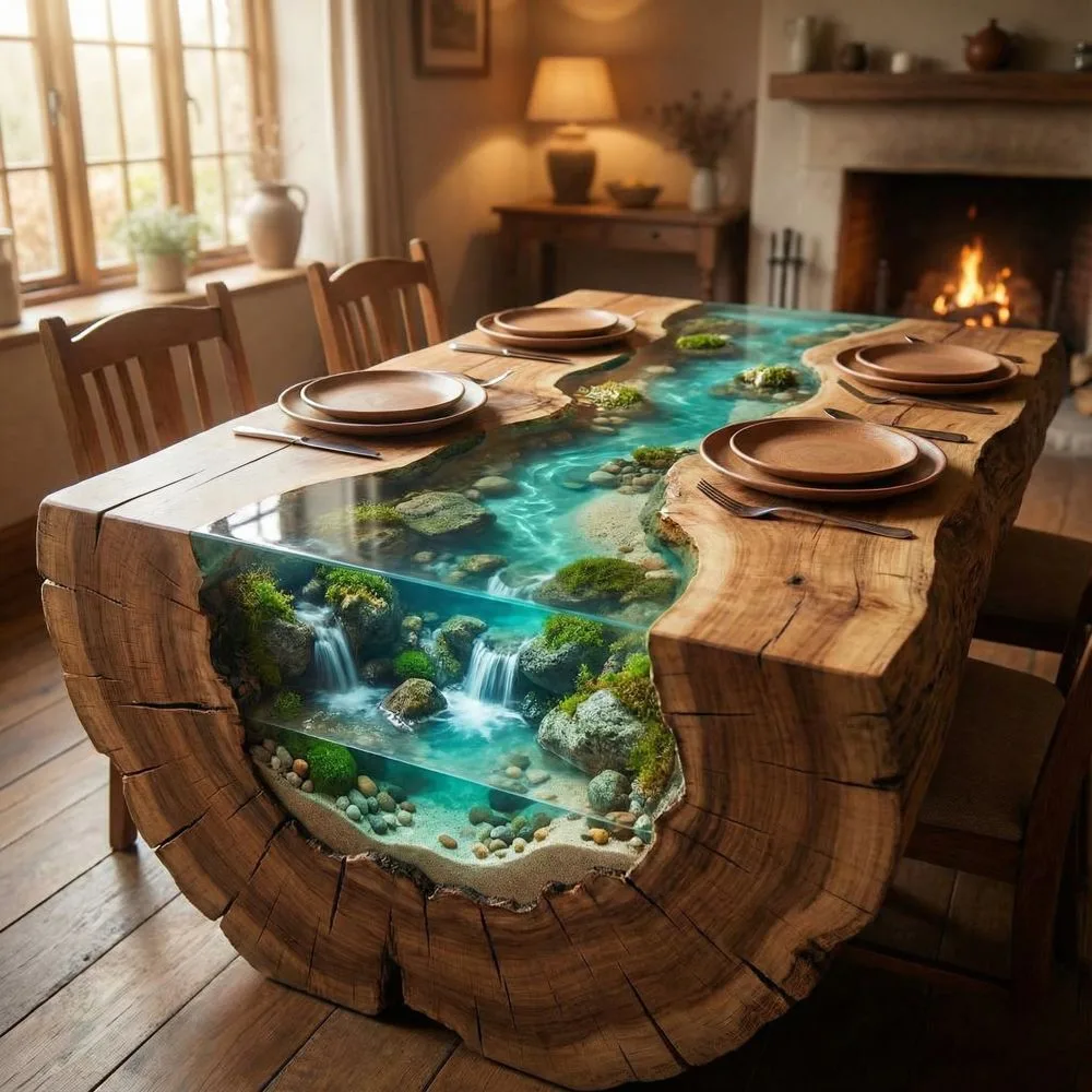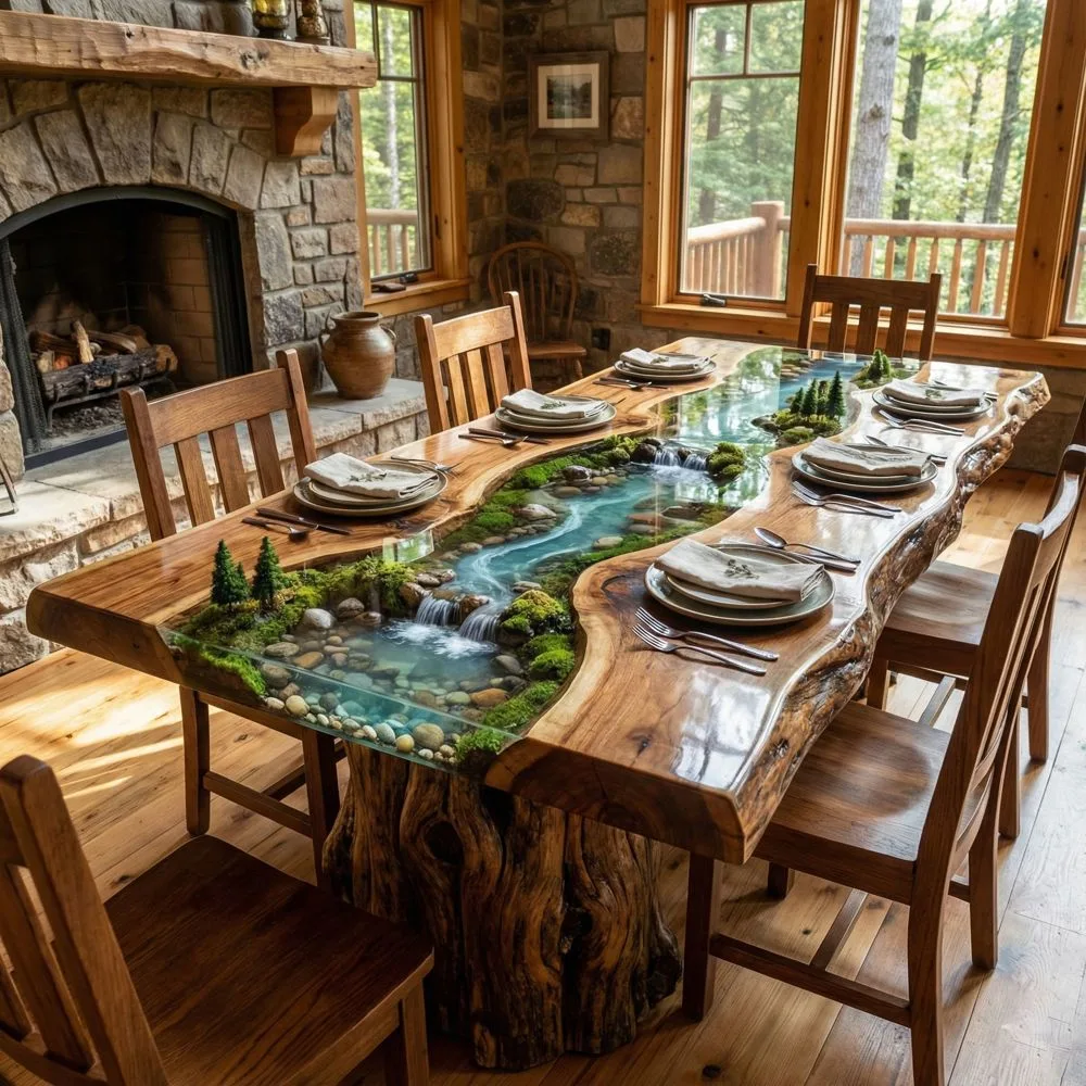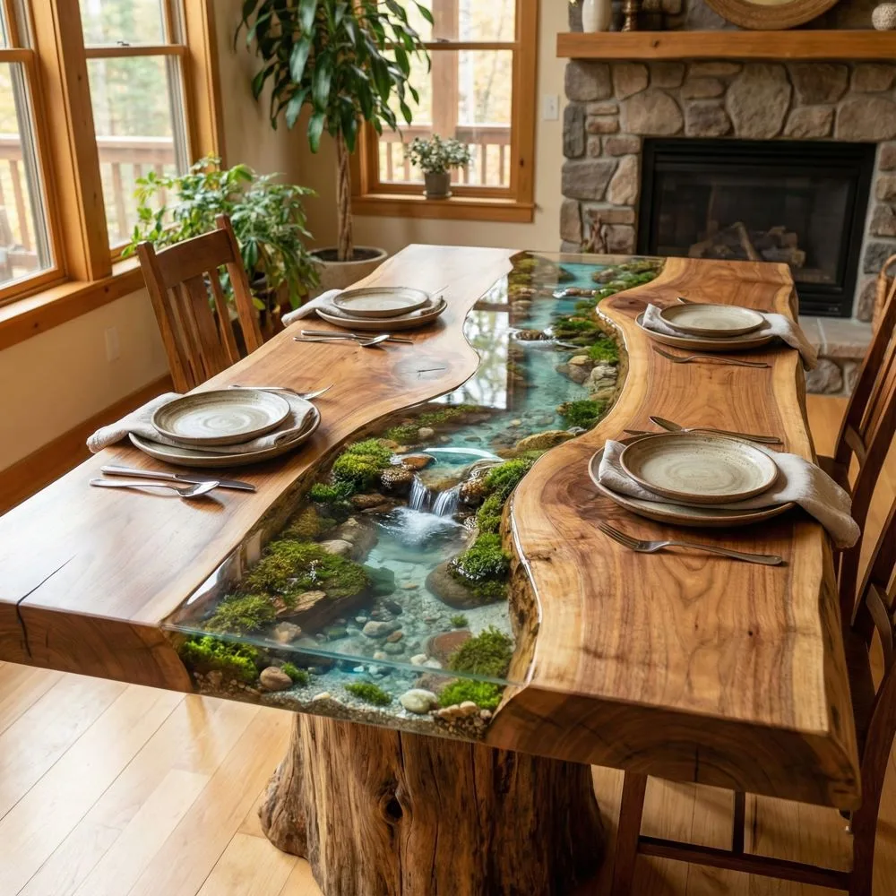 These tables often use multiple wood species or incorporate other natural elements like stones, shells, or preserved moss within the resin. The result feels like bringing a piece of wilderness indoors, perfect for nature lovers who want something truly extraordinary.