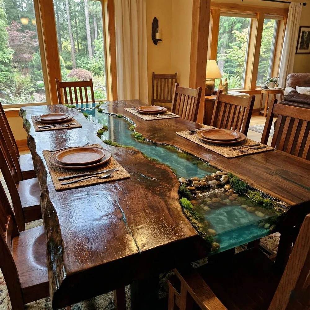 Whether you choose bold black rivers cutting through pale maple or subtle clear resin highlighting walnut’s richness, your table reflects personal style while celebrating nature’s beauty. The investment in quality craftsmanship pays dividends in daily enjoyment and lasting value. These tables don’t just fill spaces in homes; they create gathering places where families build memories, friends share stories, and everyday moments become a little more beautiful.